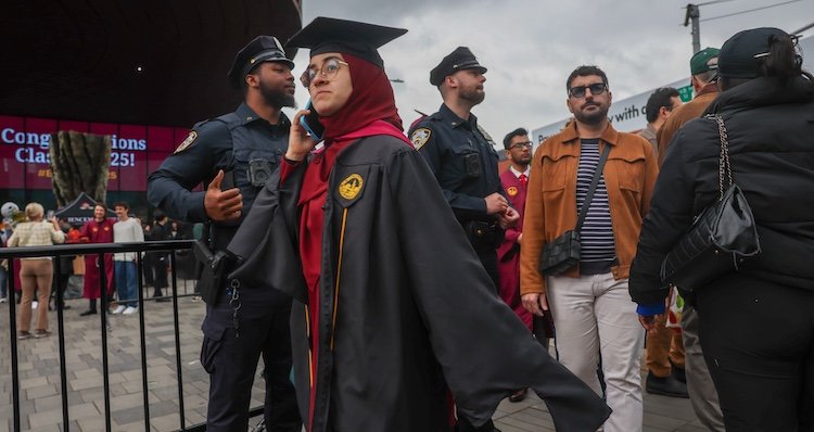 “Commencement ceremonies at several local universities have undergone a post-Oct. 7 overhaul,” we’re told, “and some students say their free speech rights are being suppressed.”